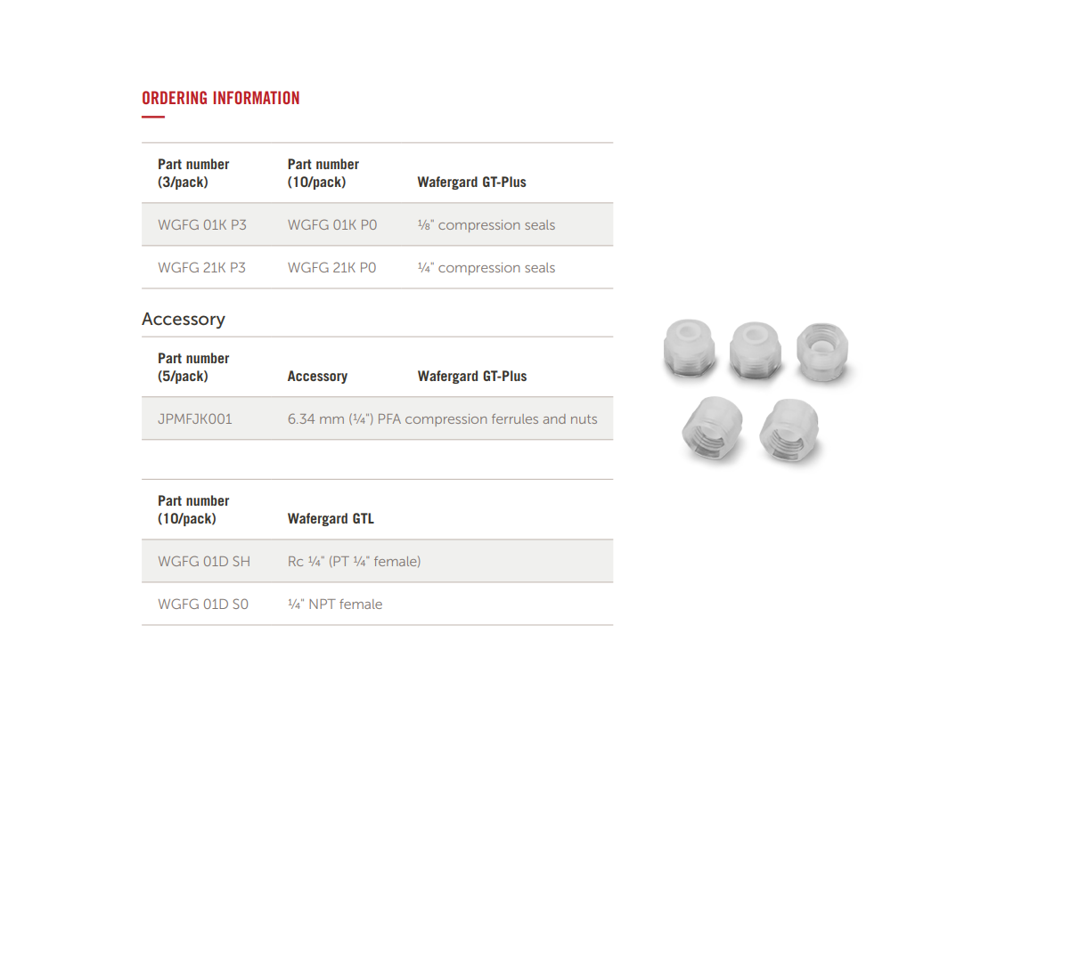 6.34 毫米 (1/4") PFA 压缩卡套和螺母,用于 Wafertard